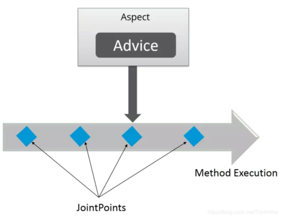(2)连接点(Join point):指方法,在Spring AOP中,一个连接点 总是 代表一个方法的执行。 应用可能有数以千计的时机应用通知。这些时机被称为连接点。连接点是在应用执行过程中能够插入切面的一个点。这个点可以是调用方法时、抛出异常时、甚至修改一个字段时。切面代码可以利用这些点插入到应用的正常流程之中,并添加新的行为。